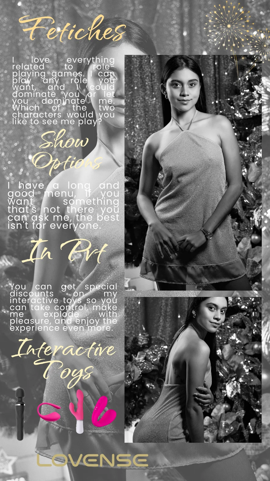 Utomhus, Smiskning, Erotisk dans, Dusch, Striptease, Rollspel, Avsugning, Fotjobb, Twerk, Doggy style, Kameltå, Cumshot, Snuskprat, Sexleksaker, Onani, Orgasm, Avrunkning, Yoga, Creampie, Fingrar, Fot Fetisch, Blottning, Bröstklämmor, Kontor, Spruta, Cowgirl